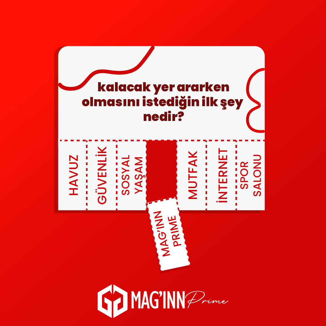 İlham veren modern iç tasarımı, estetik detayları ve ferah yaşam alanlarıyla Mag’inn Prime, öğrencilerin kendini özel hissedeceği bir ortam sunar.